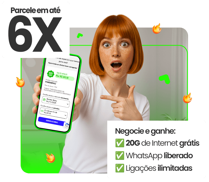 Com a gente, você pode parcelar suas dívidas e acessar descontos exclusivos que não encontrará em nenhum outro lugar.
