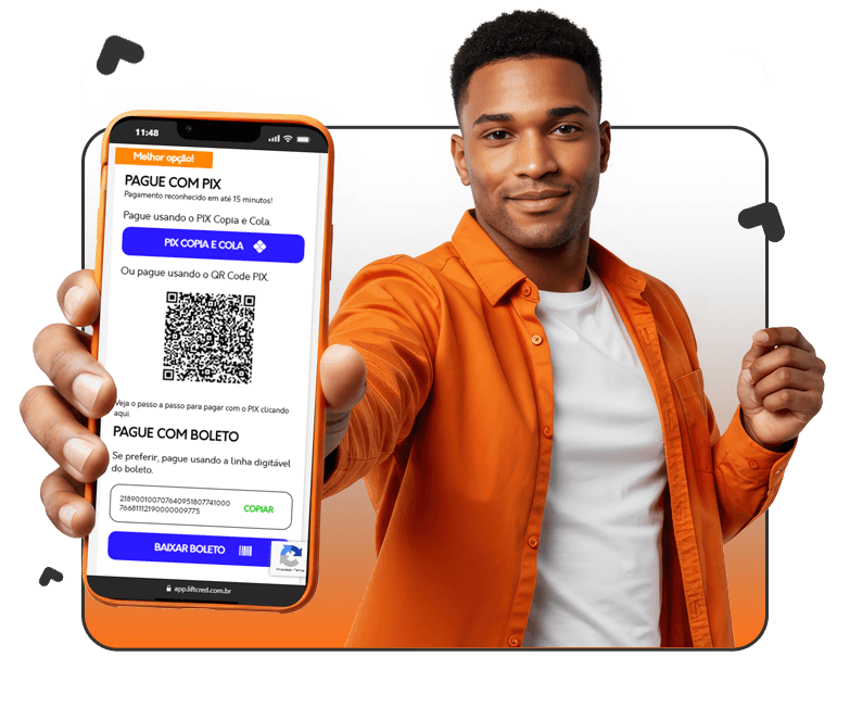 Concluindo seu acordo, você receberá um e-mail e um SMS com as informações do código PIX, linha digitável e boleto para efetivar o pagamento, mas se precisar você pode entrar no portal www.liftcred.com.br e buscar pelo boleto através do botão “Meus Acordos”.